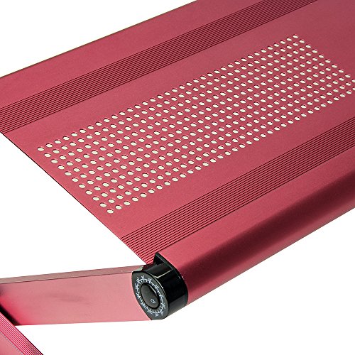 -. Binding : Office Product -. Brand : Sojitek -. Color : 03-Large-Red -. Feature : The high quality, anodized aluminum panel is incredibly durable, functional, and makes colors look beautiful. / Aluminum naturally dissipates heat, keeping your laptop running at a cooler temperature. / Drilled-in cooling holes enhance the cooling effect. This panel supports laptops of all common sizes. / Easy joints on the base of the panel let you adjust the panel's angle in 15° increments from flat to vertical. / Each leg has 3 segments that are connected with an easy adjustment ABS joints. The auto-locking joints have 360° of adjustability. -. Label : SOJITEK -. Manufacturer : SOJITEK -. Model : L1-Pink -. MPN : A-REDLAR02-g -. PackageQuantity : 1 -. PartNumber : A-REDLAR02-g -. ProductGroup : Office Product -. ProductTypeName : OFFICE_PRODUCTS -. Publisher : SOJITEK -. Studio : SOJITEK -. Title : Adjustable Vented Laptop Table Laptop Computer Desk Portable Bed Tray Book Stand Push Button Joints up to Wide 19" x 11.25" ( SOJITEK Heavyduty Red )