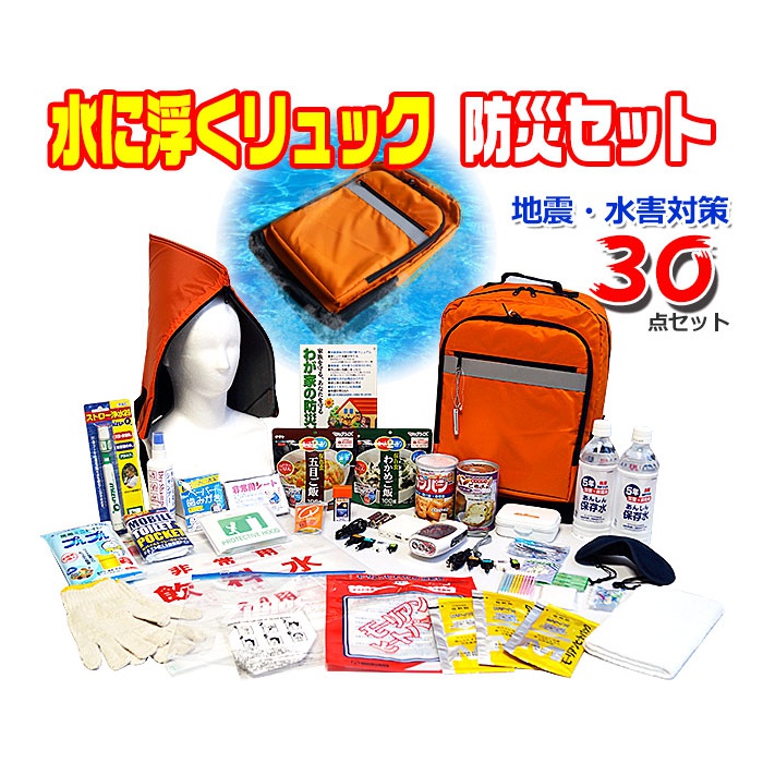 원본상품명: 水に浮くリュック防災セット 地震水害?策30点セット 代引手料無料 送料無料 用品 1人用 地震?策 防災グッズ