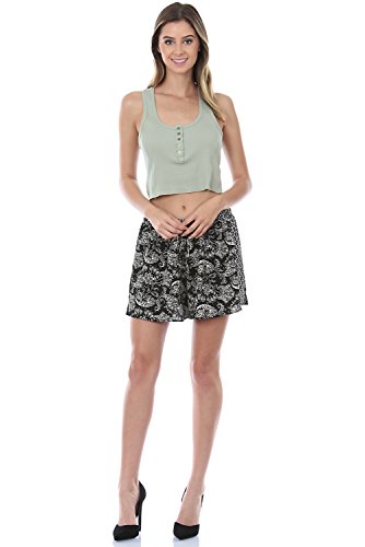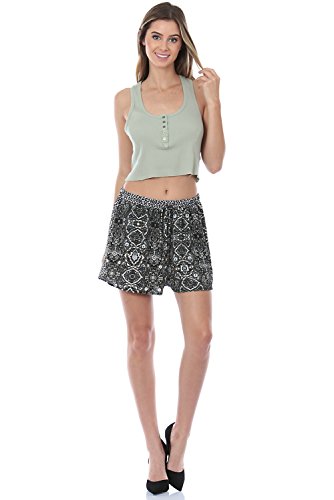 Product DescriptionMade In USA Elastic Waistband Self Tie Printed Bubble Crepe Shorts0