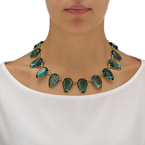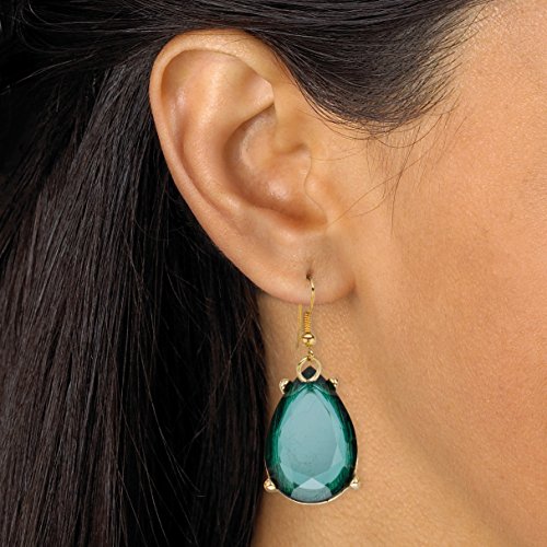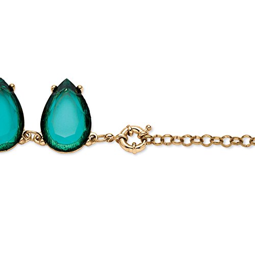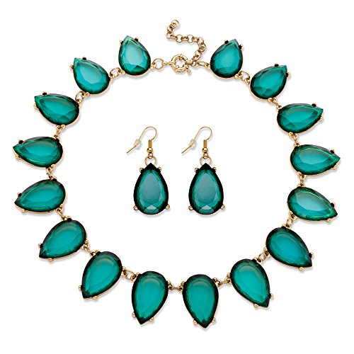 -. Title : Teal Pear-Cut Simulated Crystal Yellow Gold Tone Necklace and Earrings Set 17"