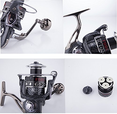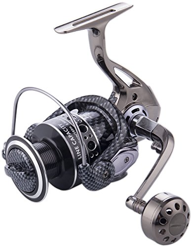 -. Feature : It is made from a special lightweight aluminum alloy that is much stronger, Durable and corrosion resistant than graphite fishing reel. / 12 + 1 stainless steel ball bearings, #4 nylon lines for 109yards, Line Capacity:(mm/M): 0.18/240, 0.20/200, 0.34/100. precision mesh brass gears, foldable Left-right interchangeable CNC machined aluminum handle create a saltwater ready spinning reel. / Patented design, sealed system and stainless steel screws for waterproof, dustproof, Scratchproof and better corrosion prevention / The metal wheel base is integrally formed, cold forging process, strong stability, the stress affordability is 7times more than ordinary fishing reels / Smooth Multi-disk drag system with superior oiled felt drag washers. 5.2:1 gear ratio assure a secure, fast retrieve.