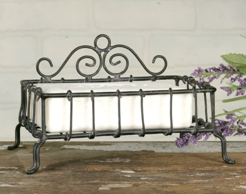 -. Feature : Features a rust-resistant finish... however has rustic and reminiscent characteristics. / Lightweight metal... reminiscent of handcrafted wire products. / Wonderful gift item / A free bar of boutique wrapped soap included in purchase / Solid four footed design