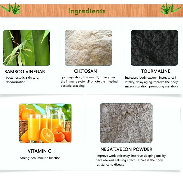 Main Ingredients Bamboo vinegar: bacteriostatic, skin care, deodorization Chitosan: lipid regulation, lose weight, Strengthen the immune system,
