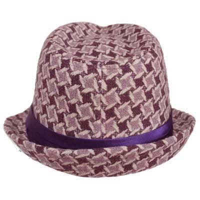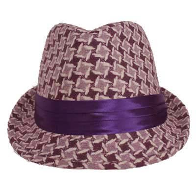 -. Binding : Apparel -. Brand : Luxury Divas -. ClothingSize : One Size -. Color : Multicolor -. Department : womens -. Feature : This variation of the hounds check pattern is ultra modern and eye catching. / Made from a wool polyester blend and fully lined in satin, this fedora is one size fitting up to 22.5 inches. / Finished off with wide triple pleated self colored hat band, this hat will add pizzazz to any outfit. / Makes a great gift. / H01376 -. Label : Luxury Divas -. Manufacturer : Luxury Divas -. Model : H01376 -. MPN : H01376 -. NumberOfItems : 1 -. PackageQuantity : 1 -. PartNumber : H01376 -. ProductGroup : Apparel -. ProductTypeName : HAT -. Publisher : Luxury Divas -. Size : One Size -. Studio : Luxury Divas -. Title : Luxury Divas Plum Purple & White Diamond Checked Stingy Fedora Hat
