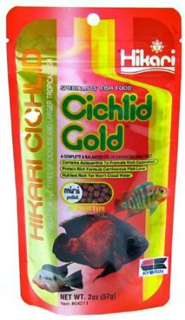 Color enhancing, daily diet for all types of cichlids and larger tropical fish. Great for Oscars too. Hikari Cichlid Gold contains special color enhancers designed to bring out the natural beauty and proper form of cichlids and other larger tropical fish. We utilize the highest grade of ingredients formulated in exacting quantities to produce a food that will bring the brilliant colors of your fish to life.Feature