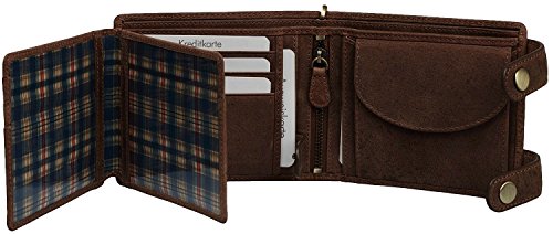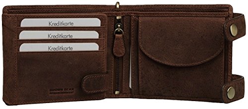 -. Feature : unverbindliche Preisempfehlung des Herstellers EUR 59,50 je Stück / Geldbörse Leder hochwertig, Büffelleder Farbe Vintage braun Used Look, 1 Metallkette ca. 40 cm lang, 8 Kreditkartenfächer, 5 Steckfächer, 1 Reißverschluss Fach im Scheinfach, 2 Scheinfächer, 1 Münzfach, BB-BH 0252 br / Produktmaß geschlossen ca. 12,5 x 10,5 x 3 cm (B x H x T) / einzeln in Geschenkkarton / BROWN BEAR DESIGN GERMANY