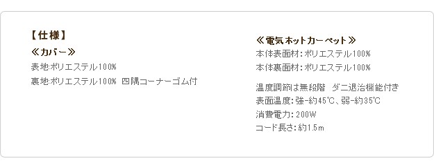 材質:ホットカーペット本体表面・裏面-ポリエステル100%、カバー表地・裏地-ポリエステル100%、内部-ウレタン