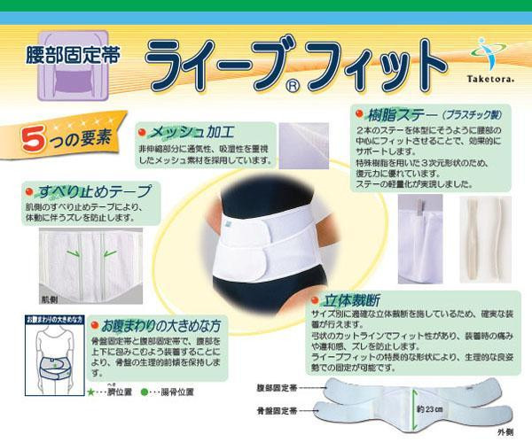 | 立体裁断を施しているため確実な装着が行え、内側のすべり留めテープにより、体動に伴うズレを防止。メッシュ加工のためムレなどを防ぎ、快適な装着感です。お腹まわりの大きめの方の場合、上下の固定帯で腹部を包み込むよう装着することにより、骨盤の生理的前傾を保持します。 |