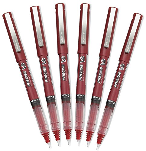 Pilot Precise V5 Stick Rolling Ball Pens, Extra Fine Point, Red Ink, 6 Pack