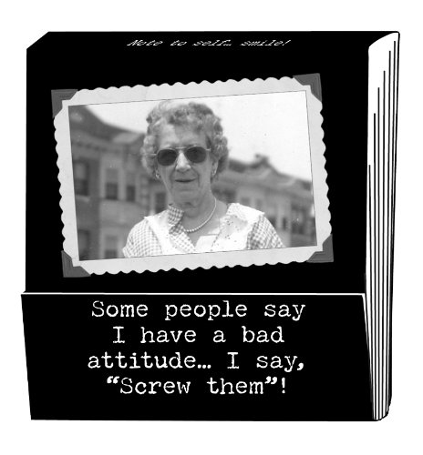 Studio : Primitives by Kathy Publisher : Primitives by Kathy Binding : Kitchen Product Description This matchbook notepad reads "Some people say I have a bad attitude…I say screw them!" The top reads "Note to self…smile!" The bottom reads "Life is short....get over it!" Perfect to use as a little scratch piece of paper, Trash Talk by Annie is the creator of this funny, high quality product. 0