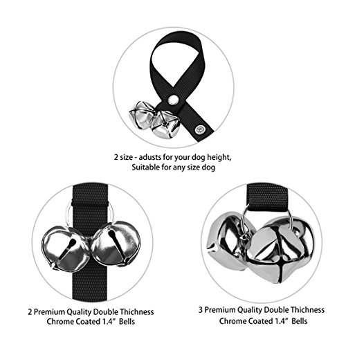 Mximum convenience.Snap design make the doorbell works on doorknobs and pull handles, suitable for almost all doors. Both dog bells have two snap points make it adjustable easily adjusting the length.