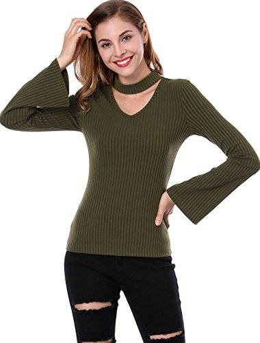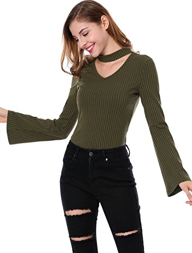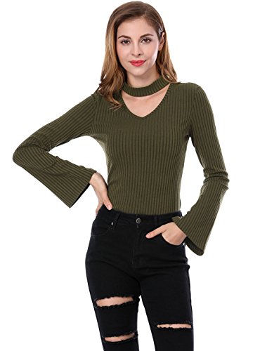 -. Title : Allegra K トップス トランペットスリーブ Vネック チョーカートップス 着痩せ レディース