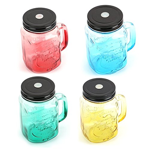 -. Title : HOKESHELL Ice Cold Mason Jar Glass Juice Bottle With Lid Use With Straws 15 OZ.- Ship based on Random Color