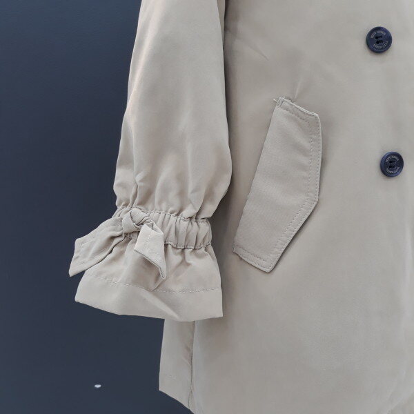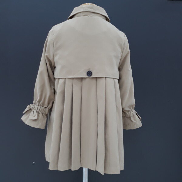 더블여밈으로 클래식한 분위기를 주는 뒤가 예쁜 원피스같은 트렌치코트입니다길이감도 적당하여 어떤옷이나 코디가 예쁘며 소매끝셔링이 귀엽고 예뻐요