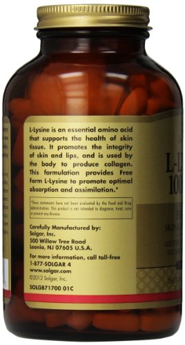 EASY TO TAKE - The formulation of Solgar L-Lysine 1000mg provides the body with Free Form L-Lysine in order to promote optimal absorption and assimilation into the body's systems.