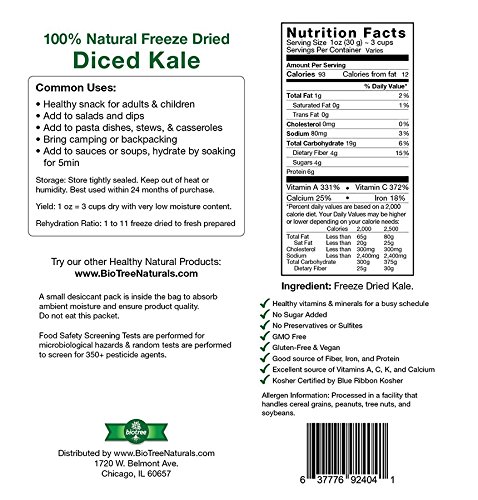 Biotree Naturals Crunchy Delicious Kale - All Natural Freeze Dried Diced Kale Snack: No Added Sugar or Preservatives Paleo Gluten-Free Healthy Snack for...