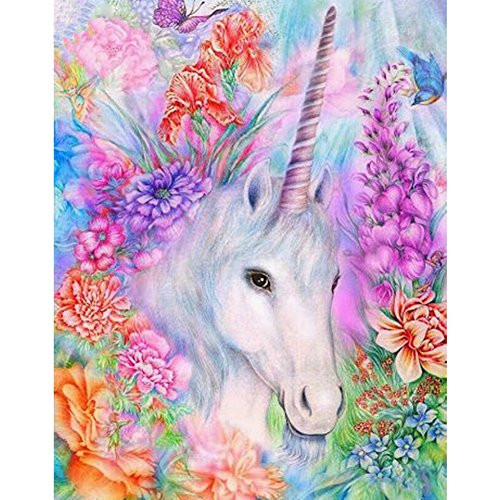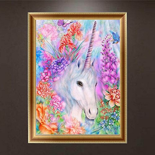 5D Diamond Painting, Full Drill Unicorn Crystals Embroidery DIY Resin Cross Stitch Kit Home Decor Craft (Unicorn in Garden)