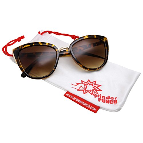 grinderPUNCH Womens Flash Color Mirror Revo Lens Oversized Cat Eye Sunglasses. 100% Protection against harmful UVA/UVB rays. Multicolored reflective color lens.