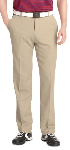 Flat-front golf pant featuring side-seam pockets and French fly with zipper