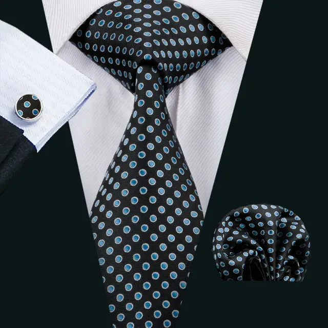 | [해외]LS-1491 배리. 좋아서 클래식 남성 넥타이 100% 실크 블랙 폴카 도트 넥타이 손수건 커프스 세트 남성 웨딩 파티 비즈니스 |