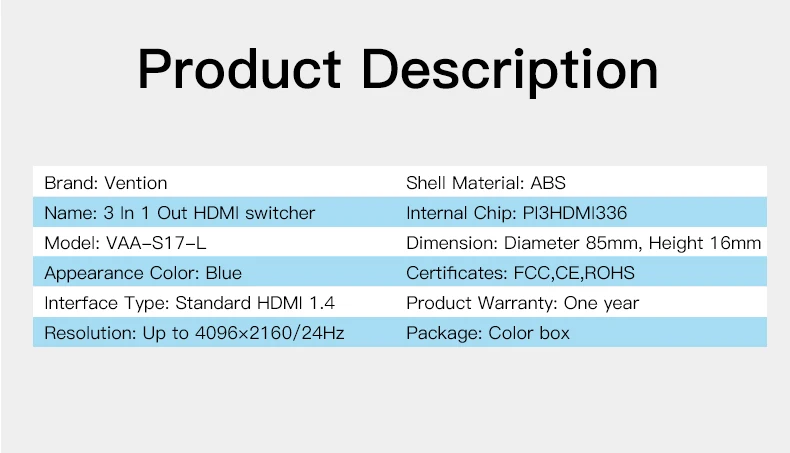 Type:HDMI 3 in 1 Out Adapter