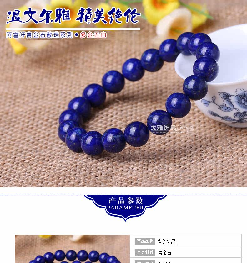 天然阿富汗青金石手链 多少金无白女款单圈 佛珠手链手串猴年吉祥