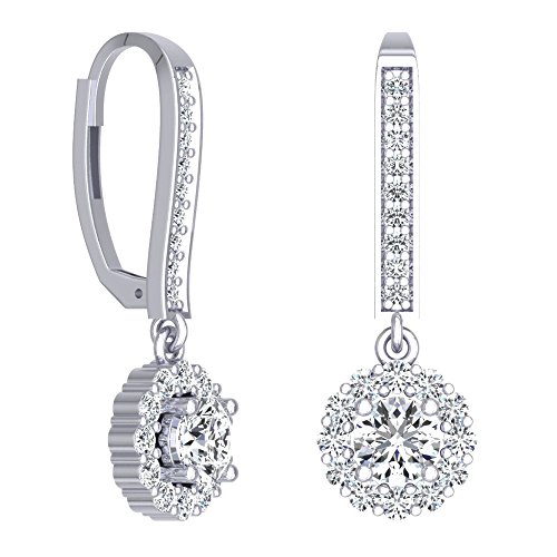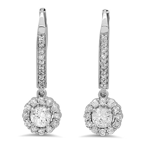 -. Title : 0.95 Carat (ctw) 14K White Gold Round White Diamond Ladies Halo Style Dangling Drop Earrings 1 CT