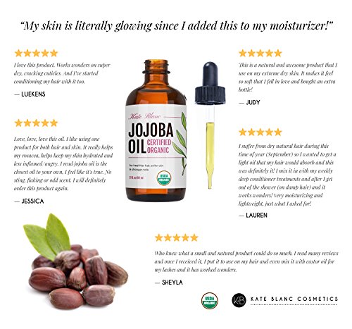 USDA CERTIFIED ORGANIC JOJOBA OIL - Kate Blanc's Organic Cold Pressed Jojoba Oil is certified by USDA and is guaranteed to be authentic, pure, natural, and hexane free. Proven results to soften skin, giving it a radiant and energetic look. 100% Guaranteed Authentic or FULL REFUND.