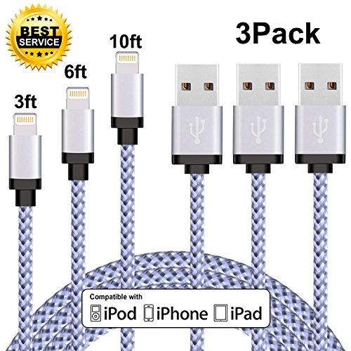 -. Title : Cablex iPhone Charger 3Pack 3FT 6FT 10FT Nylon Braided Lightning Cable Cord Compatible with iPhone 7/7 Plus 6/6S Plus 5S/5C/5, iPad Pro/Air 2,iPod and More(White)