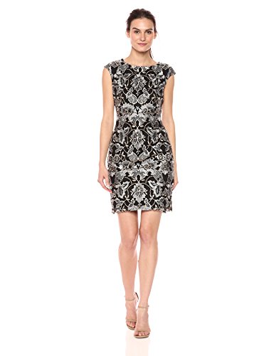 Donna Ricco Women's Metallic Embroidered Sheath, Platinum/Gold, 14