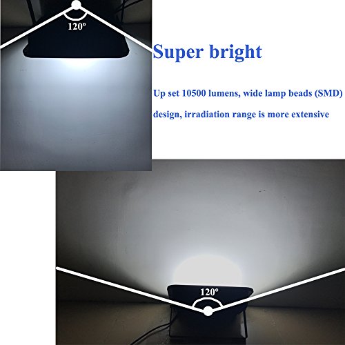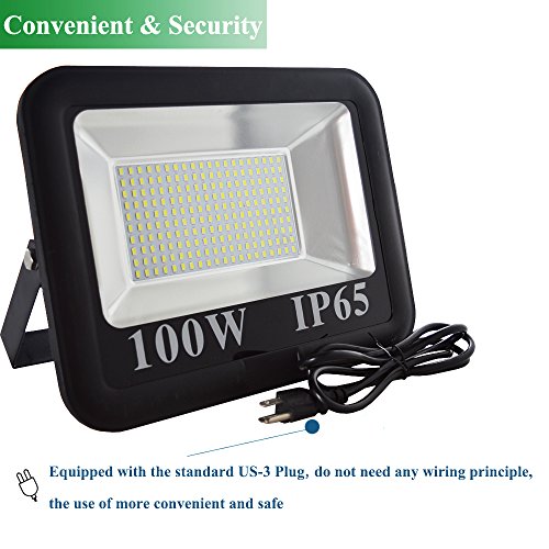 - Energy saving and economy: Security floodlight are use 100 watt led chip【SMD Chip】 to replace the traditional 300W halogen bulb, saving more than 65% of the electricity bills,add the Us-3 security plug,do not need any wiring principle , are more convenient and safe to use.