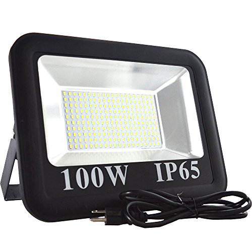 ZHMA 100W LED Outdoor Floodlights, Security Lights Daylight White (5000-7500K)10500 LM With US-3 Plug , Waterproof Super Bright Wall Floodlighting for Garage, Garden, Buildings