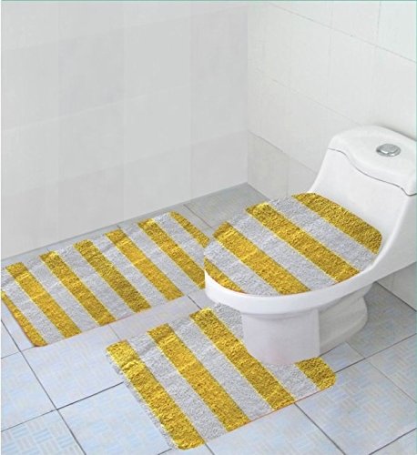 -. Title : 3 Piece Stripe Luxury Acrylic Bath Rugs Set Large 18"x"30 Contour Mat 18"x18" and Lid