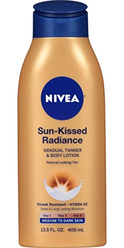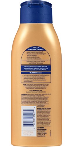 NIVEA Sun-Kissed Radiant Skin will leave your skin looking naturally tan and touchably soft. The freshly scented formula with NIVEA’s exclusive Hydra IQ technology intensively moisturizes skin and provides a more even-looking tan with less streaking. Smoothes and gradually tans your skin within 5 days. How it works NIVEA’s exclusive Hydra IQ technology supports skin’s own hydration network to unleash deep, non-stop moisture that lasts more than 24 hoursFeature