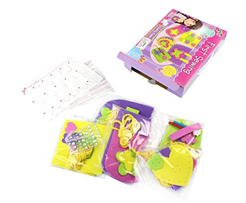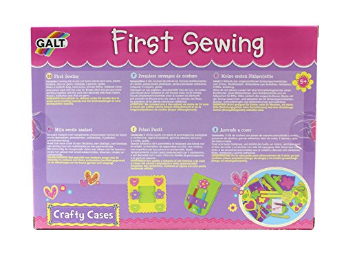 - Feature : Children 5 and older will love using Galt's First Sewing kit to make a butterfly bag, neck purse, picture frame, notepad cover and pencil case / It's easy: just stitch together the colorful pre-punched foam shapes, then decorate with stick-on gems and foam cut-outs / Contains 5 sewing kits of pre-cut foam pieces and cord, plastic bodkins, gems, notepad, 2 pencils, instruction guide / With Galt's Crafty Cases, even young children can create something beautiful to keep or give as a gift / Galt products are quality controlled and meet all American, Canadian, British and European standards for toy safety