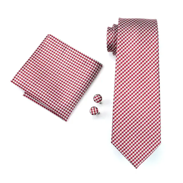 남성 넥타이 클래식 격자 무늬 자카드 짠 100% 실크 브랜드 넥타이 손수건 커프스 세트 웨딩 비즈니스 파티 무료 우표 LS-1037