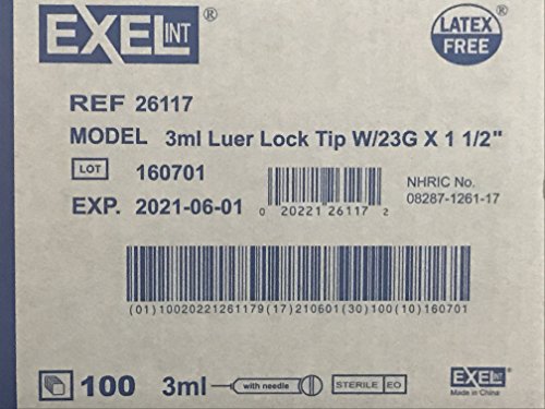 3ml Luer Lock Tip Syringe with 23g 1 1/2 in Needles