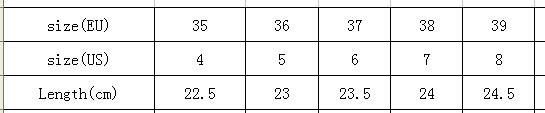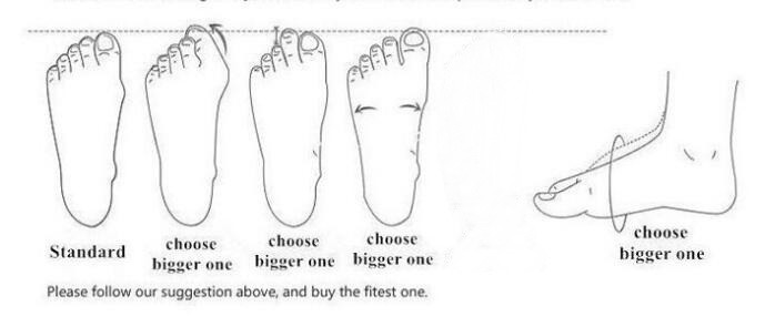 Note:Please choose fit size according to your feet length.if your foot is a little wider or instep is a little wider,we suggest you choose one bigger size. thanks