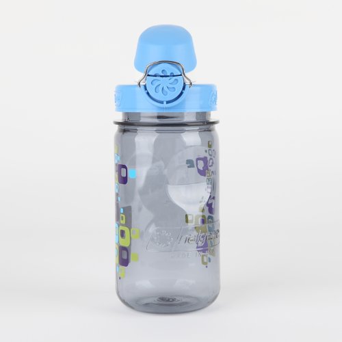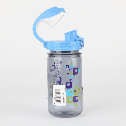 Nalgene Kids OTF Bottle (Gray Bottle/Square Design/Blue Lid, 12-Ounce)