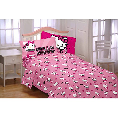 Studio : Franco MFG Publisher : Franco MFG Product Description This Hello Kitty Three-Piece Flannel Twin Sheet Set will be the cat's meow in your little one's bedroom. It features a cute and lovely design against a bright pink leopard print background. Each polyester sheet set comes with a fitted sheet, flat sheet and pillowcase. It is machine washable for easy care and maintenance. It is an outstanding way to enhance the decor of your child's living space. 0
