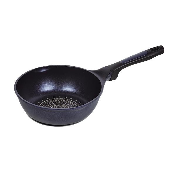 金属ヘラも使える、強力ブルーダイヤモンドコーティング。3層構造でキズに強く、汚れに強く、焦げ付きにくい!チャーハンもパラっと仕上がります。ガス火専用です。 |