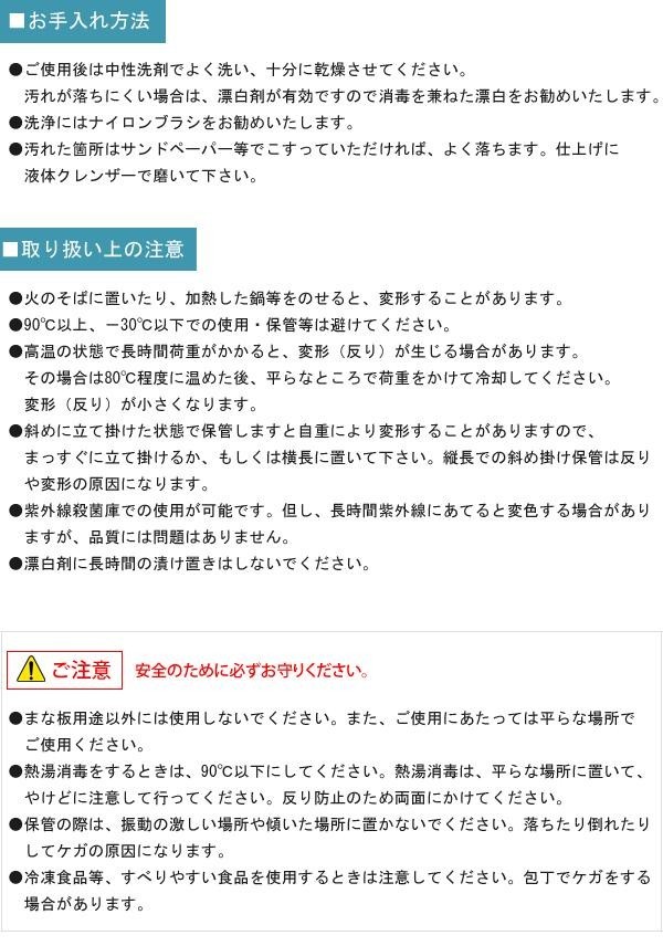 | 合成ゴムまな板は木肌に近い感触と、従来品にない清潔さを合わせもつまな板です。合成ゴムを素材としているので、吸水性がなくて水切れがよく、汚れがつきにくいので雑菌の繁殖を防ぎます。また水洗いの後、ふきんで軽く拭くだけで水が切れるので、手入れもとても簡単です。 |