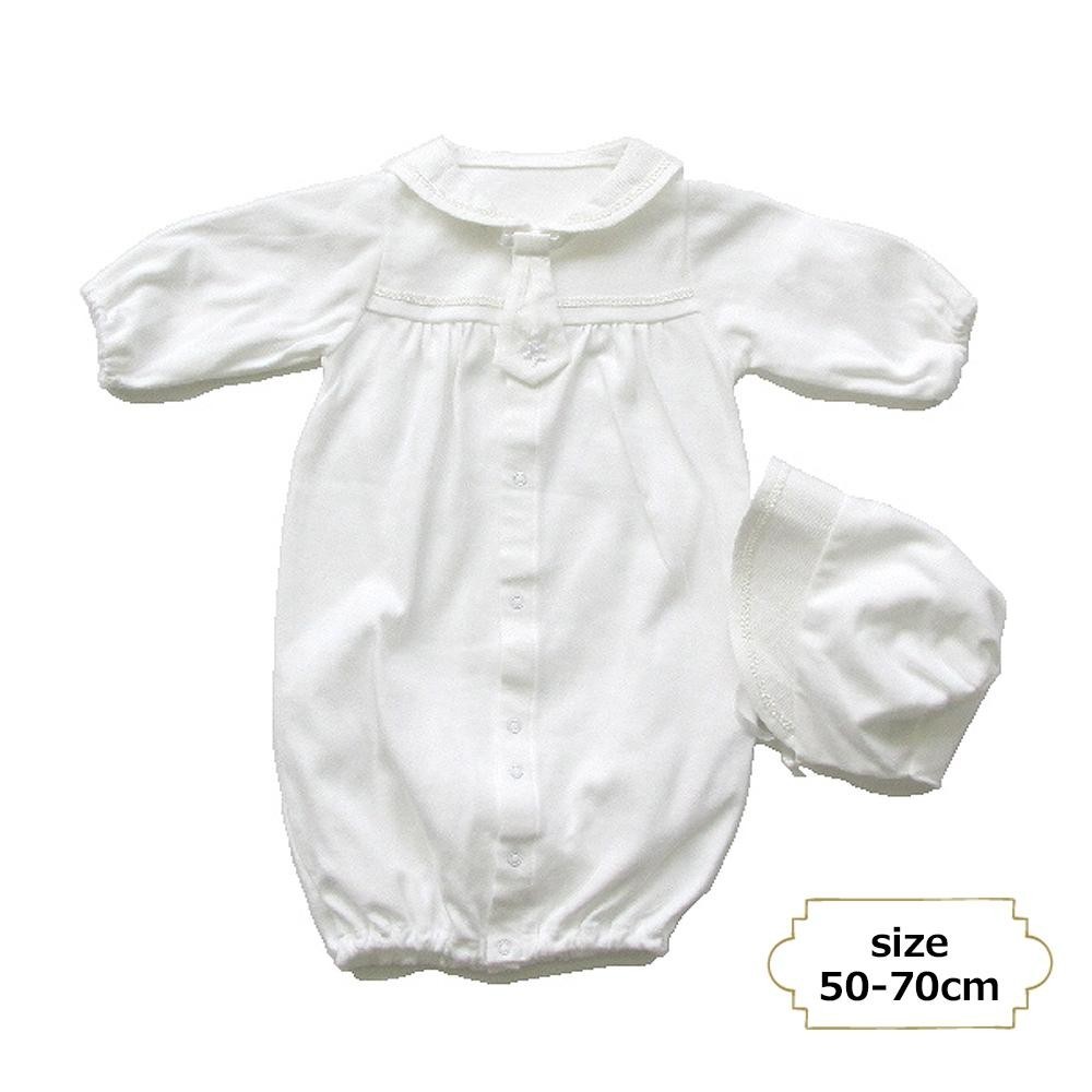 | 男の子を意識したデザインのカミングホームドレスです。産院からの退院のお祝いやお披露目等の特別な一日に使っていただけるフード付きドレスオールです。おむつ替えが頻繁な新生児期は筒型ドレスで、動きが活発になってくる乳児期は股割れカバーオールで、股スナップの付け替えで2ウェイに使えます。 |