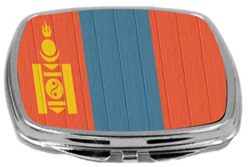 Rikki Knight Compact Mirror on Distressed Wood Design, Mongolia Flag, 3 Ounce