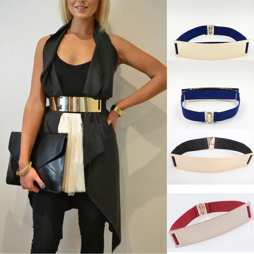 Model Number: Elastic Mirror Metal Waist Leather Metallic Bling Plate Wide Belt