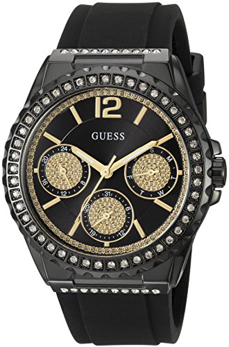 -. Title : GUESS Women's U0846L1 Sporty Black Watch with Black Dial , Crystal-Accented Bezel and Silicone Strap Buckle