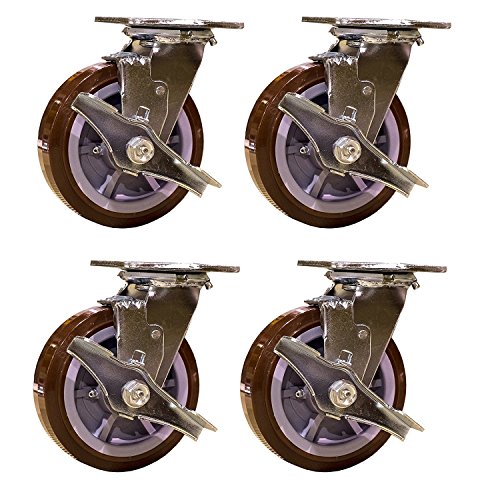 Service Caster SCC-30CS620-PPUR-TLB-4 Heavy Duty Swivel Casters with Brakes, Non-Marking Polyurethane Wheel (Pack of 4)