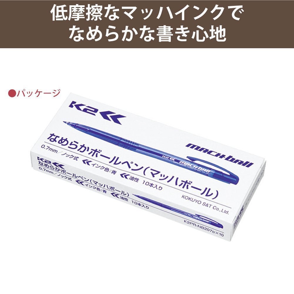 Kokuyo smooth ballpoint pen (K2)Mach ball knock formula 10 pieces blue K2PR-NB207BX10