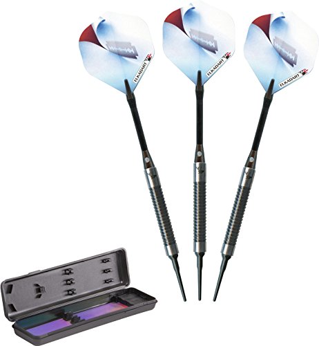 -. Feature : Designed with high quality, 80% tungsten and 20% nickel barrels which offer exceptional balance and styling in a slim profile / Each barrel has strategically placed knurled bands, deep grooves and rings that make excellent gripping points and encourages consistent hand placement / Lightweight, aluminum shafts feature locking holes which allow for a tighter fitting that improves stability and greatly reduces the need to retighten during play / Features 2BA Tufflex Tips II soft tip dart points that have a reinforced cone, making them extremely strong and durable; Intended for use with electronic dartboards / Darts are fashionably stored and protected in the slim-profile, hard-shell case; Proudly designed, manufactured, assembled and packaged in England