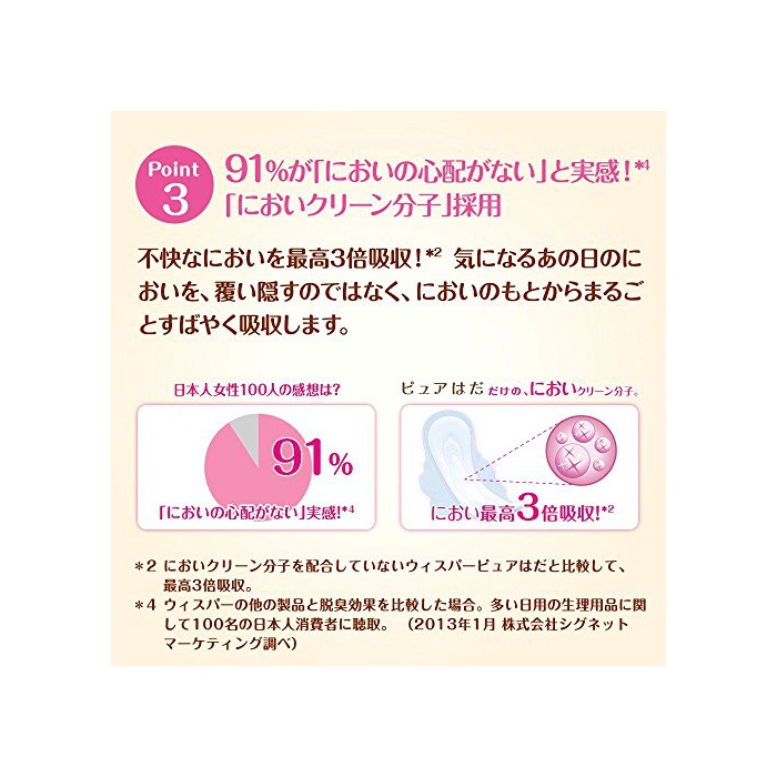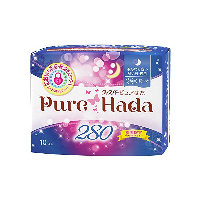 원본상품명: ウィスパ? Pure Hada 多い日夜用 羽つき